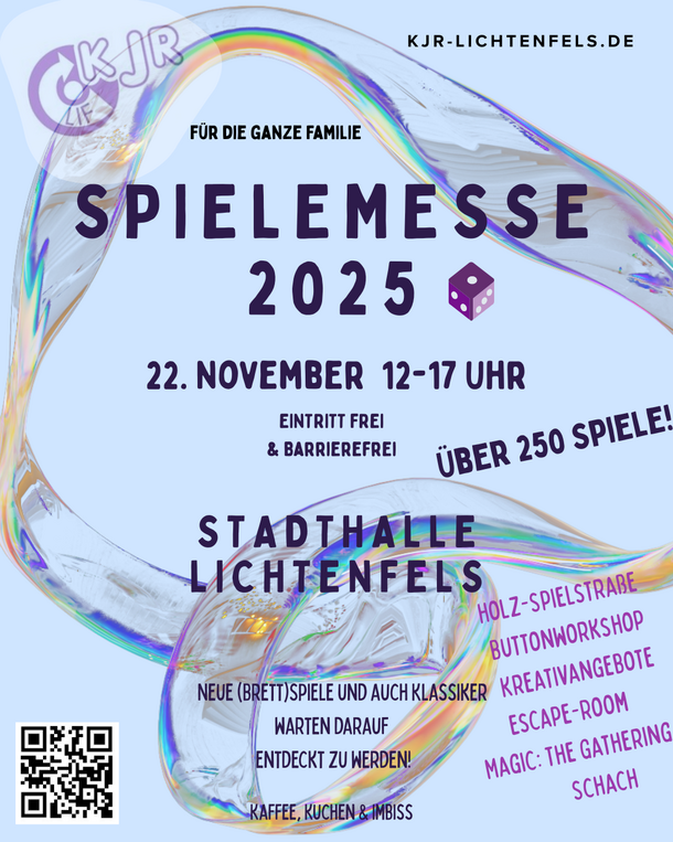 Am 22. November 2025 verwandelt sich die Stadthalle Lichtenfels in ein wahres Spieleparadies! Von 12:00 bis 17:00 Uhr erwartet euch und eure ganze Familie ein abwechslungsreicher Tag voller spannender Spiele, kreativer Workshops und unvergesslicher Erlebnisse – und das alles bei freiem Eintritt!