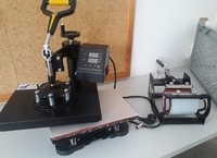 Heißdruckpresse zur Herstellung bedruckter Becher und T-Shirts, Teller und Kappen.