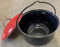 Schwarzer, rechteckiger Bräter mit Haltegriffen rechts und links für Zeltlager oder ähnliche Veranstaltungen geeignet. Bratfläche 45 x 30 cm.